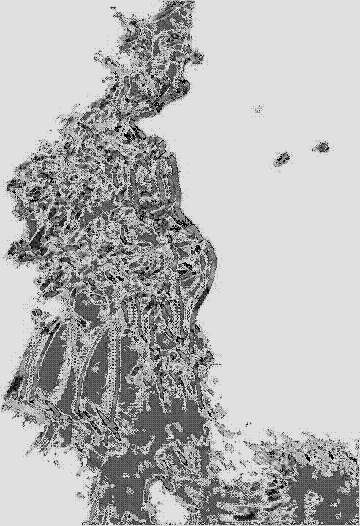 From original thistle image by rotation and gradient detection by 3D-Tensor model and color coded by rotated HUE color circle, August 1999 (Original image 1989)