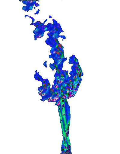 From original image by detection of the direction of the gray level gradient using a 3D-tensor method, then color-coding the directions by using a HUE color circle look-up-table, August 1999 (Original image 1989)